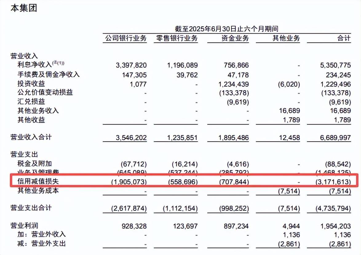贷款损失是重头,2025年上半年损失21.12亿元,同比增加5.98亿元,增幅39.4%,是损失增长的根源,显然公司贷款质量管理仍有待进一步增强。分业务来看,公司银行业务、零售银行业务、资金业务损失额分别为19.05亿元、5.59亿元、7.07亿元,前两大业务分别增加1.1亿元、4.52亿元,资金业务损失减少2.51亿元。