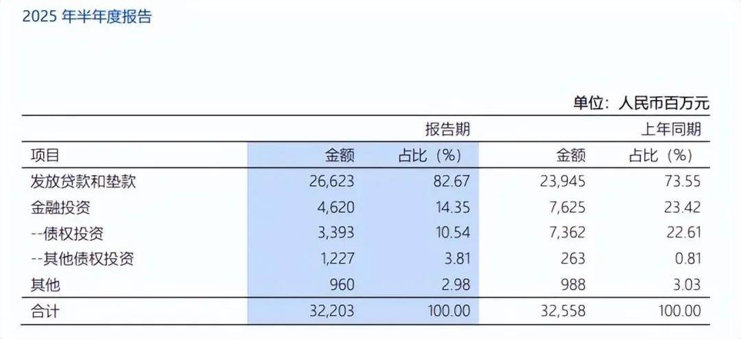 2025年中报显示,集团信用减值损失及其他资产减值损失为322.03亿元,同比减少3.55亿元,其中发放贷款和垫款损失为266.23亿元,同比增加26.78亿元,金融投资损失下降明显,金额为46.2亿元,同比减少30.05亿元。