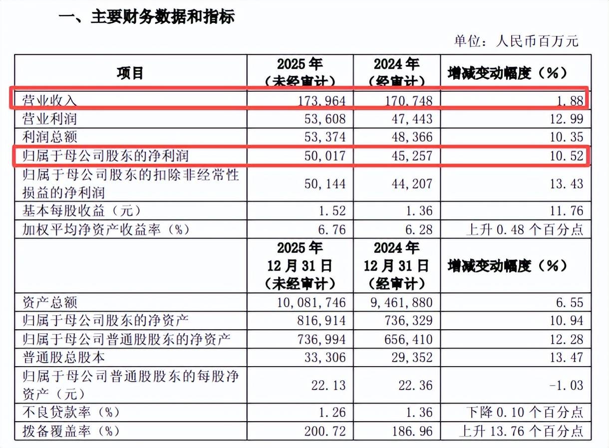 业绩快报显示,预计2025年实现营业收入、归母净利润分别为1739.64亿元、500.17亿元,同比分别增长1.88%、10.52%,结束了前四年收入下滑态势,净利润增速则有所放缓。