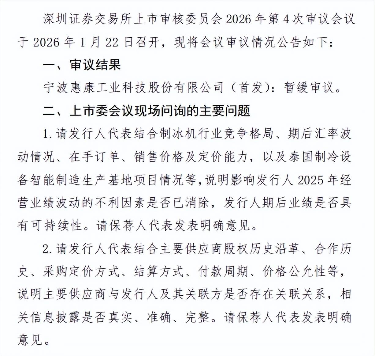 上市委会议现场主要围绕业绩是否具备可持续性、主要供应商与公司及关联方是否存在关联关系进行问询,同时要求公司结合主要供应商股权历史沿革、合作历史、交易价格等,说明主要供应商与发行人及其关联方是否存在关联关系,相关信息披露是否真实、准确、完整。