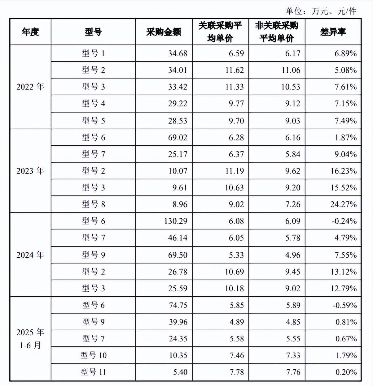报告期内,公司向华艺工艺品厂采购的原材料均为五金件,据公司披露,向其采购同型号的产品平均价格大部分高于非关联方,以2022年为例,采购型号1-5,平均采购单价分别为6.59元、11.62元、11.33元、9.77亿元、9.7元,而向非关联方采购单价分别为6.17元、11.06元、10.53元、9.12元、9.03元。