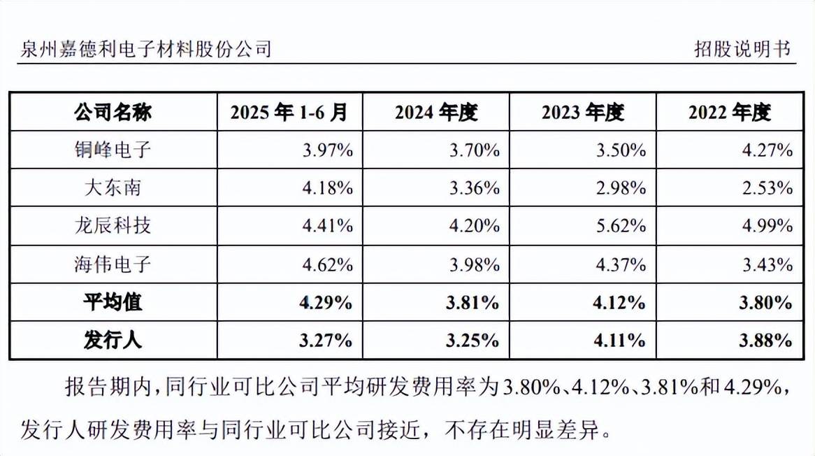 对比来看,可比同行研发费用率均值分别为3.8%、4.12%、3.81%、4.29%,进一步来看,公司研发费用率逐渐落后于同行,2024年、2025年1-6月在同行中均垫底,以2024年为例,铜峰电子、大东南、龙辰科技、海伟电子分别为3.7%、3.36%、4.2%、3.98%,公司还需要进一步重视科研投入。