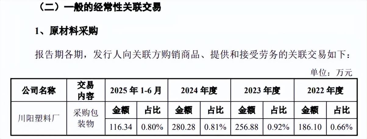 关联采购逐年递增。报告期内,泉州台商投资区川阳塑料制品加工厂(川阳塑料厂)是嘉德利重要供应商,采购额分别为186.10万元、256.88万元、280.28万元、116.34万元,采购内容是包装物。