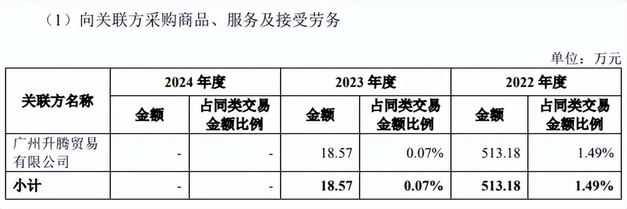 企查查显示,2019年3月,升腾贸易成立,注册资本50万元,未实缴资本,由何小兰(黄亦聪亲戚)100%持股,2022年、2023年参保人数分别为4人、2人,于2024年4月28日注销,而招股书显示,该公司为实际控制人黄超亮的侄子黄亦聪及侄子配偶李丹红控制的公司。