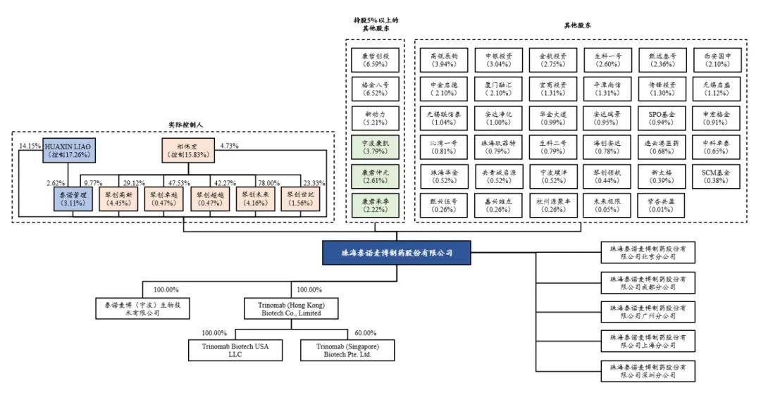 实控人表决权仅33.1%。泰诺麦博没有控股股东,实际控制人是郑伟宏、HUAXINLIAO,直接持股比例分别为4.73%、14.15%,郑伟宏还通过控制琴创世纪、琴创未来、琴创高新、琴创卓越、琴创超越间接控制11.11%的股权,HUAXINLIAO通过泰诺管理间接控制3.11%的股权,两人合计控制公司33.1%的股权。