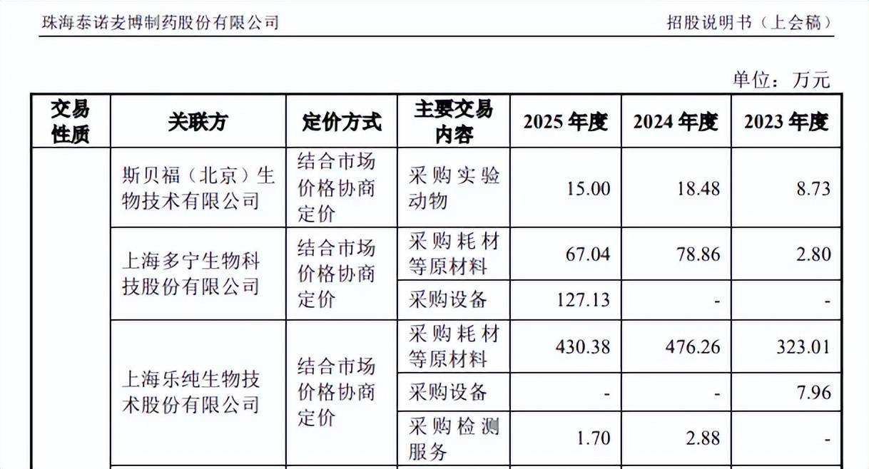 历任董事陈宇曾担任上海乐纯生物技术股份有限公司董事,即该供应商是公司关联方,报告期采购分别为325.26万元、476.84万元、433.96万元,采购内容是采购耗材、其他等原材料,上交所对采购背景、主要内容及定价公允性进行问询。