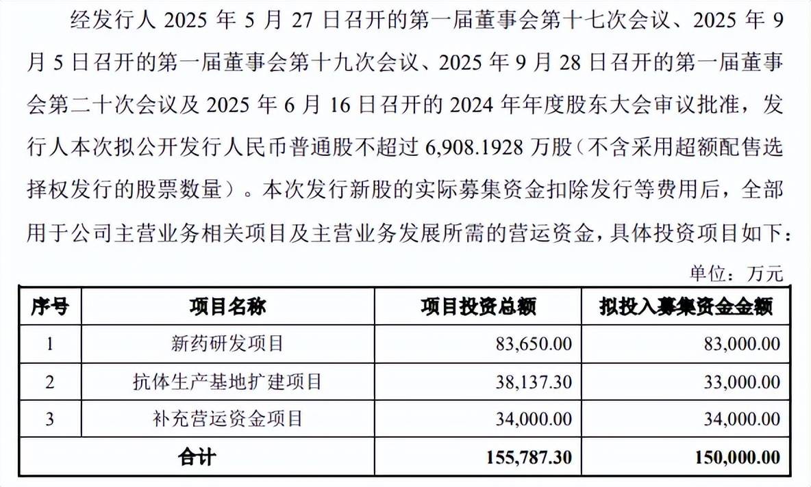 据短平快解读了解,本次IPO,麦诺泰博拟公开发行不超过6,908.1928万股,拟募集资金15亿元,用于新药研发项目、抗体生产基地扩建项目、补充营运资金项目,拟使用募集资金分别为8.3亿元、3.3亿元、3.4亿元。