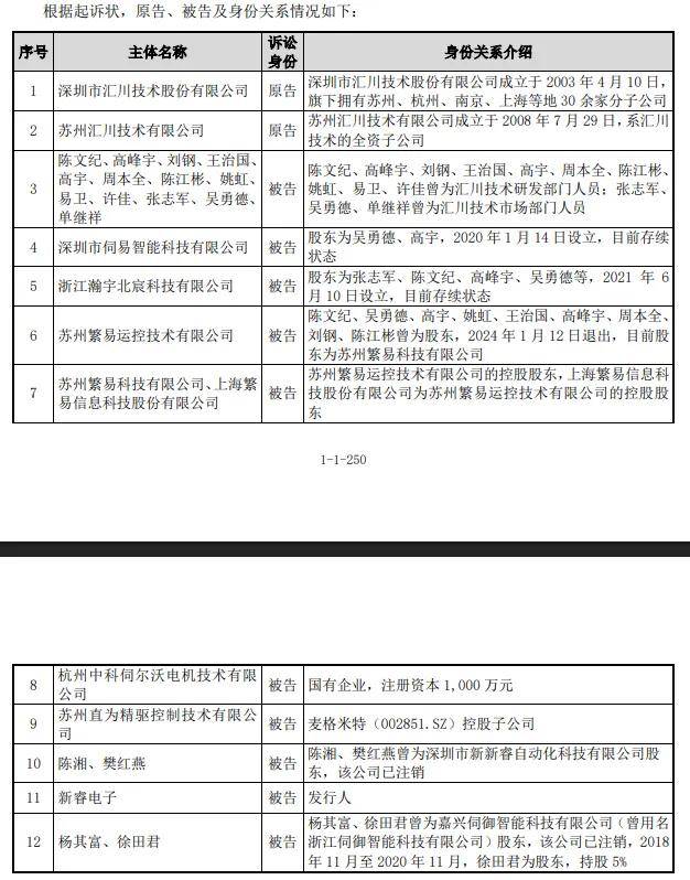 卷入汇川股份诉讼纠纷,案件尚未开庭。2025年11月,深圳市汇川技术股份有限公司、苏州汇川技术有限公司(原告)认为陈文纪、高峰宇、刘钢、王治国、高宇、周本全、陈江彬、姚虹、易卫、许佳、张志军、吴勇德、单继祥、深圳市伺易智能科技有限公司、浙江瀚宇北宸科技有限公司、苏州繁易运控技术有限公司、苏州繁易科技有限公司、上海繁易信息科技股份有限公司、杭州中科伺尔沃电机技术有限公司、苏州直为精驱控制技术有限公司、陈湘、樊红燕、新睿电子、杨其富、徐田君等25个主体(被告)共同实施了侵犯原告技术商业秘密的行为,给原告造成重大损失。