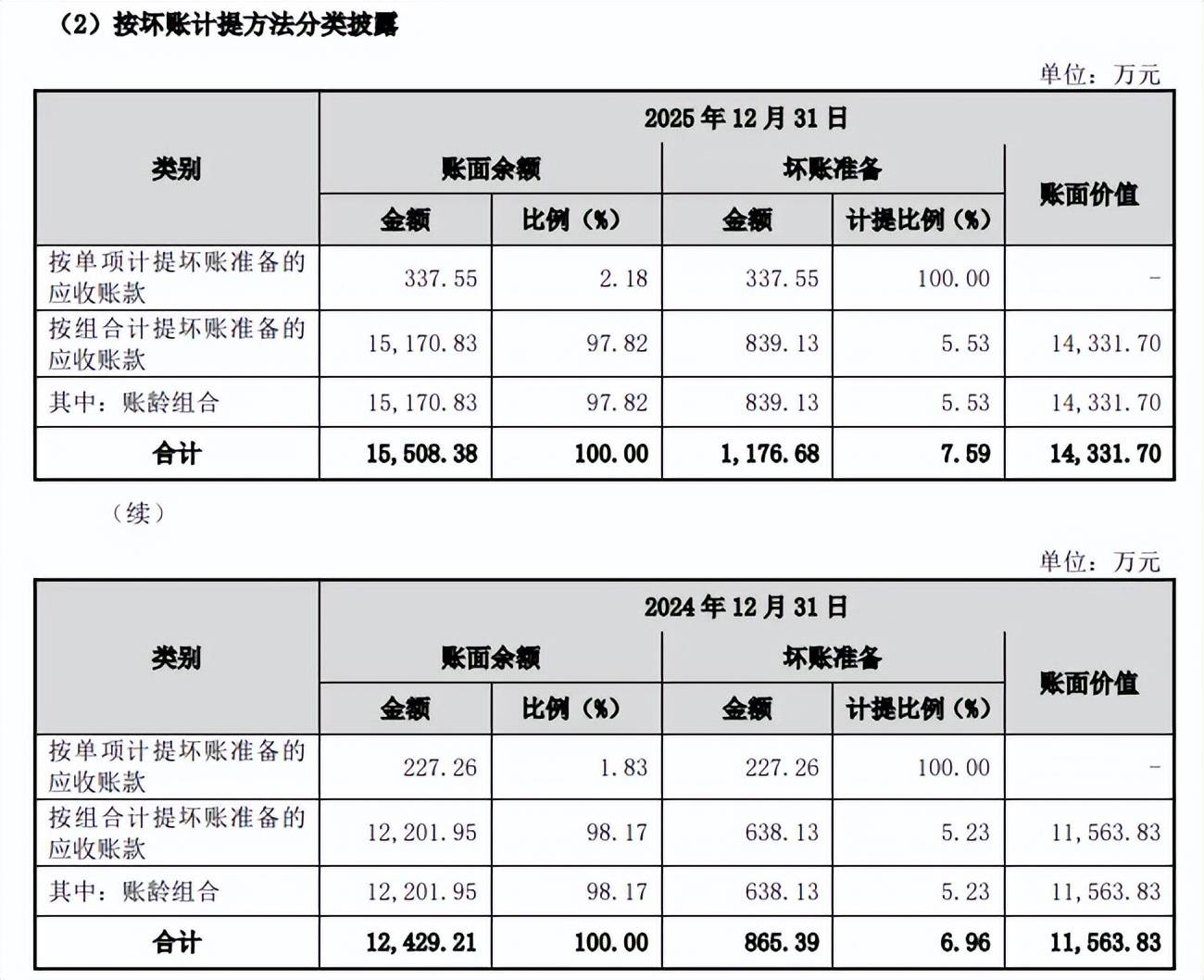 与此同时,应收账款坏账准备金额走高明显,分别为560.34万元、865.39万元、1,176.68万元,期末对广东众联智能装备有限公司单项计提为95万元,该公司成立于2022年6月,注册资本为500万元,未实缴资本,目前已经被限制高消费。