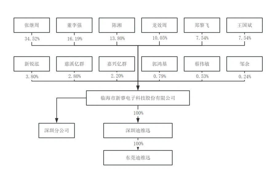 创始团队曾存在严重分歧,何雄伦最终退股。新睿电子由何雄伦、张继周、董李强三人出资设立,出资比例分别为37.5%、37.5%、25%,三人均为技术出身,何雄伦在公司经营中主要负责硬件研发管理工作,而董李强主要负责协助张继周开展研发部门的日常管理,同时推进相关研发项目。