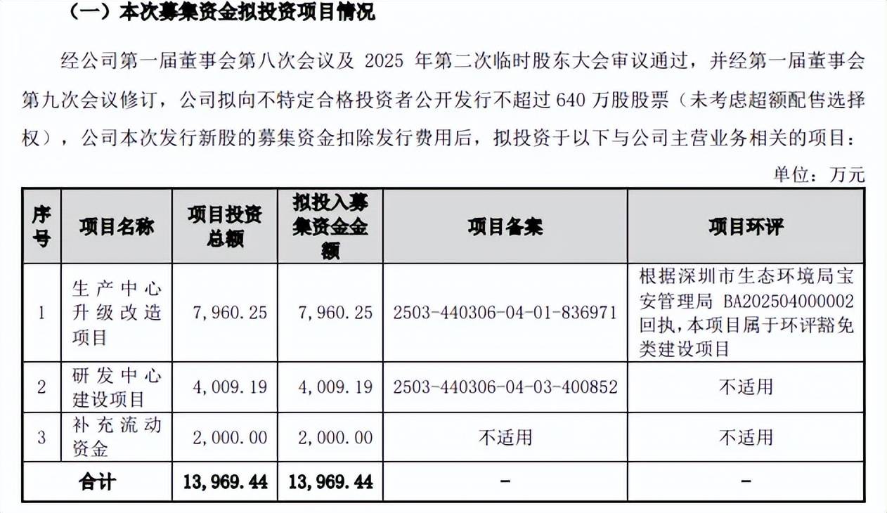 据短平快解读了解,本次IPO,新睿电子拟向不特定合格投资者公开发行股票不超过640万股,拟募集资金13,969.44万元,用于生产中心升级改造项目、研发中心建设项目、补充流动资金,拟使用募集资金分别为7,960.25万元、4,009.19万元、2,000万元。