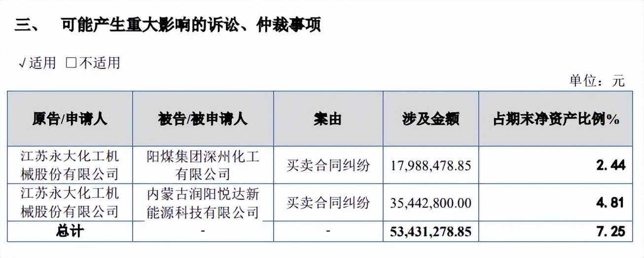 起诉润阳悦达,对合盛硅业应收账款打折收回。需要指出的是,永大股份与润阳悦达的商业交易存在纠纷,2024年8月,公司对润阳悦达提起诉讼,要求立即支付货款3544.28万元以及相应的利息损失,10月在鄂托克前旗人民法院达成调解,约定被告按期还款事宜,但后续并未履约付款,公司在2025年1月10日申请强制执行,但截至招股书披露日仍未收到法院连通知,一年多的时间过去,为何公司申请的强制执行至今未收到立案通知?公司基于审慎性原则,对该公司的应收账款、合同资产按100%的比例单项计提坏账损失3,304.32万元。