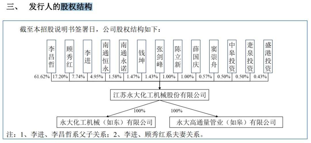一家三口表决权近87%。永大股份控股股东是李昌哲,实际控制人是李昌哲、顾秀红、李进,李昌哲持股比例61.62%、李昌哲之子李进持股比例7.74%、李进配偶顾秀红持股比例17.2%,三人是一致行动人,合计直接持股比例86.56%。
