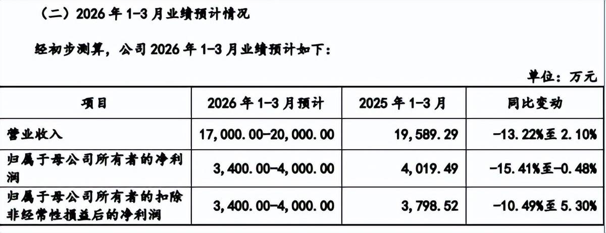 2026年Q1,公司预计实现营业收入1.7亿元至2亿元,同比变动-13.22%至2.1%;归母净利润0.34亿元至40.4亿元,同比变动-15.41%至-0.48%,最好的情况是增收不增利,最坏的情况是营收、净利双降。