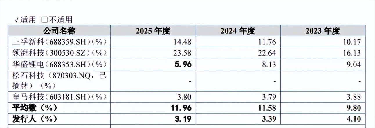 对比行业,可比同行研发费用率均值分别为9.8%、11.58%、11.96%,进一步来看,可比同行研发费用率均超过公司,以2024年为例,三孚新科、领湃科技、华盛锂电、皇马科技分别为14.48%、23.58%、5.96%、3.8%,显然公司需要进一步强化研发费用投入。