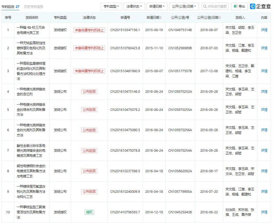 企查查显示,公司自身专利信息共27项,仅一种季铵盐型三聚表面活性剂及其制备方法(发明授权)法律状态为授权,其余专利多为公布驳回或未缴年费专利权终止,这种情况是否正常?