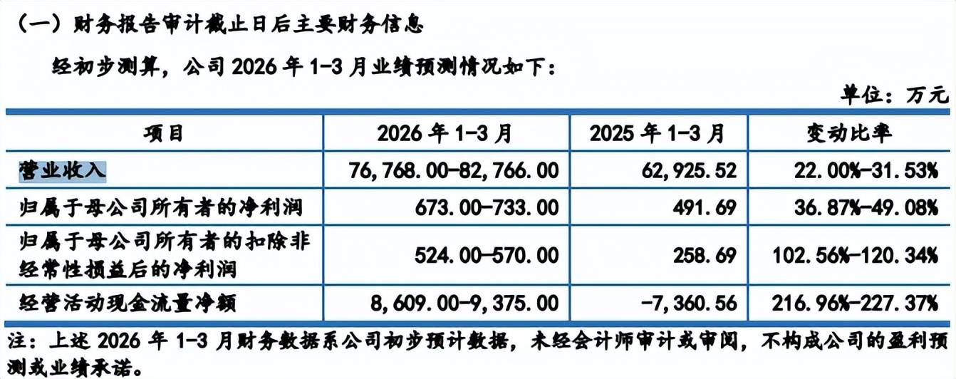 据短平快解读了解,2025年Q4业绩增速有所放缓,实现营业收入、归母净利润分别为12.24亿元、0.85亿元,同比分别增长14.61%、23.29%。公司预计2026年Q1实现收入7.68亿元至8.28亿元,同比增长22%至31.53%,归母净利润673万元至733万元,同比增长36.87%至49.08%,上年同期增速分别为51.53%、14.04%,即收入增速有所放缓。