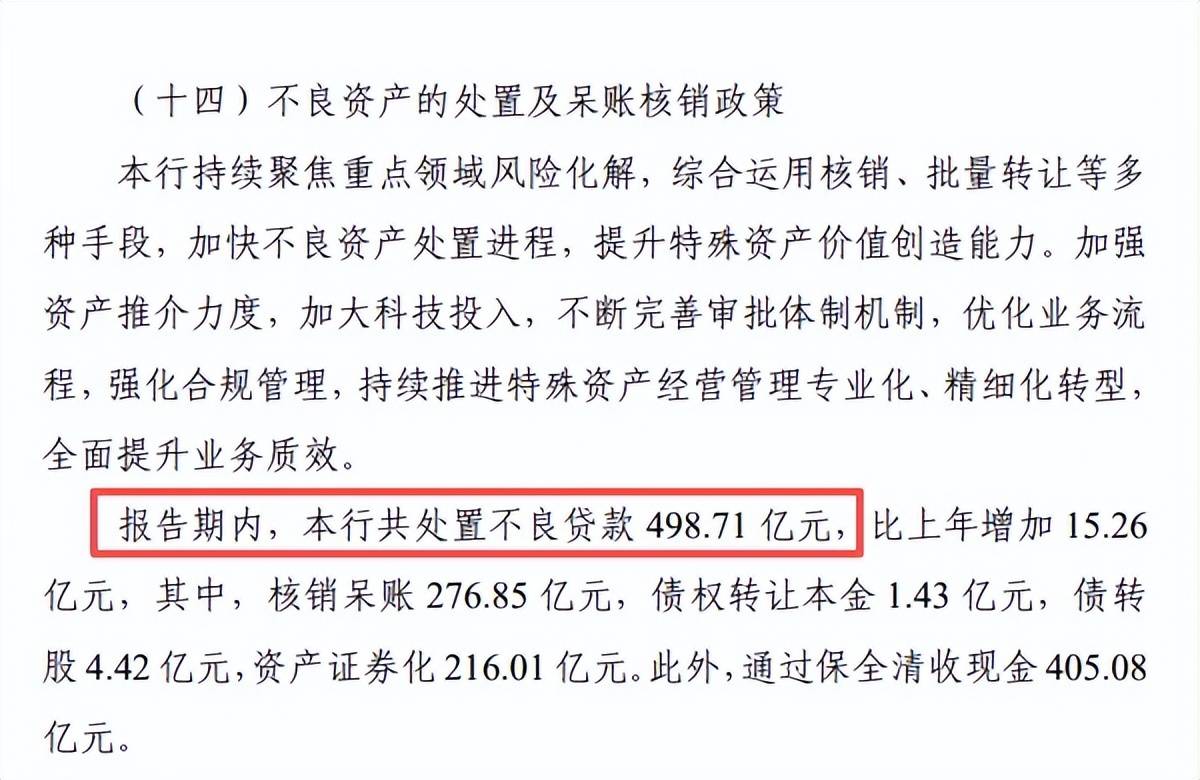 2025年全年,光大银行共处置不良贷款498.71亿元,比上年增加15.26亿元,其中,核销呆账276.85亿元,债权转让本金1.43亿元,债转股4.42亿元,资产证券化216.01亿元。