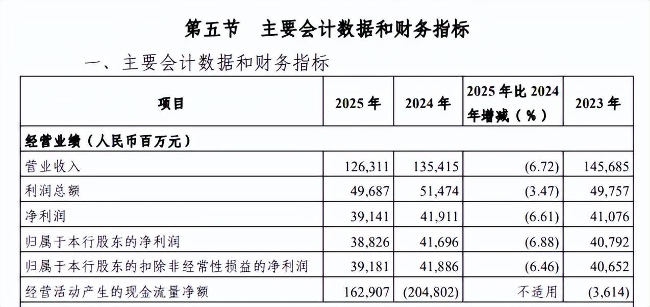 收入已经连续四年下滑,较高点减少超264亿元。2025年,光大银行实现营业收入1263.11亿元,同比下滑6.72%,归母净利润为388.26亿元,同比下滑6.88%,即录得营收、净利双降的成绩。
